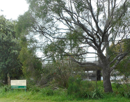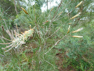 Also noticed an impressive specimen of Grevillea longifolia (red flowers and saw tooth leaves)