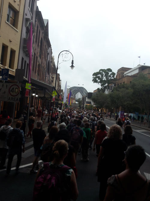 After a short slow tram ride, joined the procession down George Street from Town Hall to Barangaroo - at the tail end with the Eora Nation Fire Truck